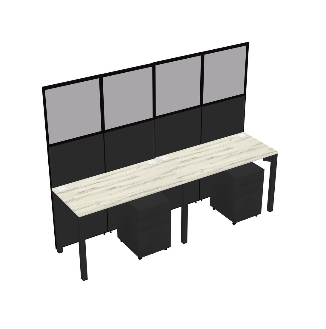 Heinne Holz Shared Rectangular Office Cubicle Panel System With Mobile Drawers For 2 Persons