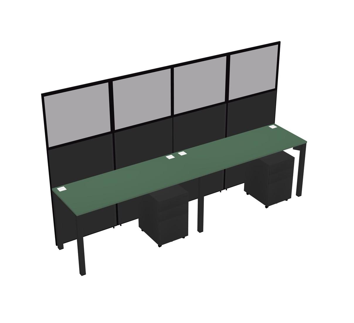 Green Shared Rectangular Office Cubicle Panel System With Mobile Drawers For 2 Persons