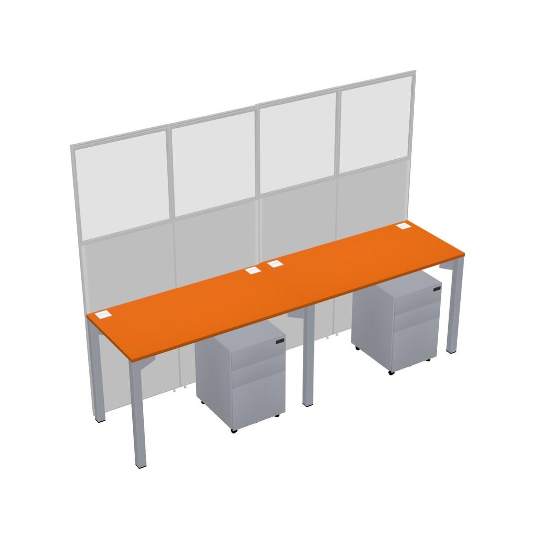 Orange Shared Rectangular Office Cubicle Panel System With Mobile Drawers For 2 Persons