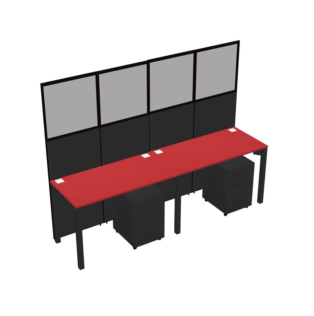 Prism Red Shared Rectangular Office Cubicle Panel System With Mobile Drawers For 2 Persons