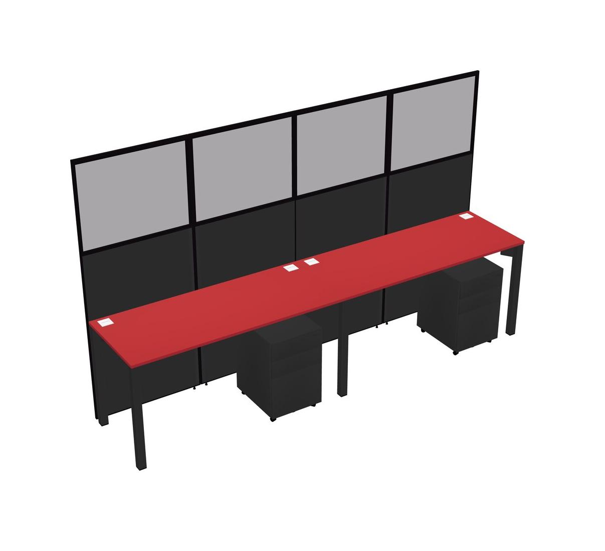 Prism Red Shared Rectangular Office Cubicle Panel System With Mobile Drawers For 2 Persons