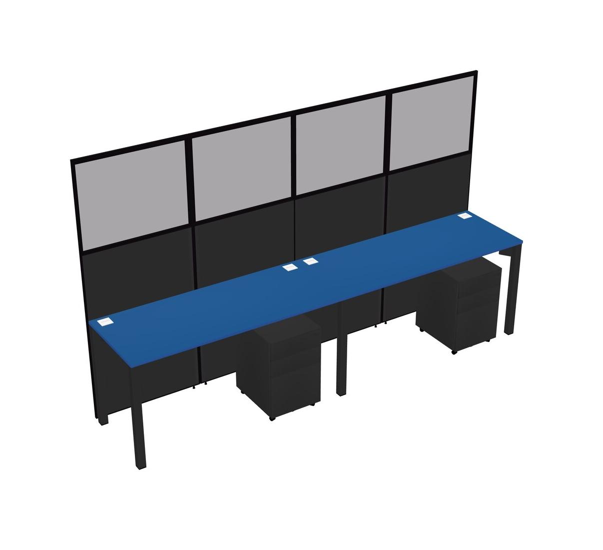 Prism Blue Shared Rectangular Office Cubicle Panel System With Mobile Drawers For 2 Persons