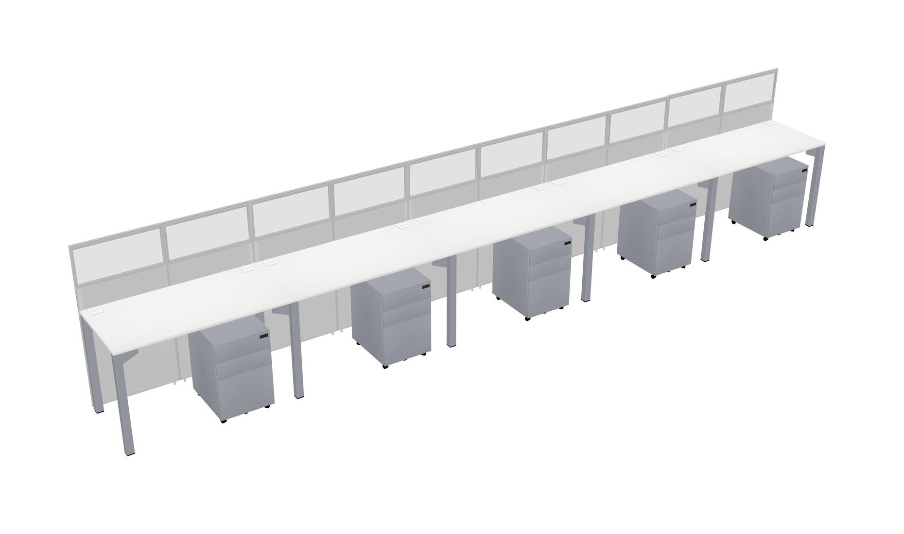 White Shared Rectangular Office Cubicle Panel System With Mobile Drawers For 5 Persons