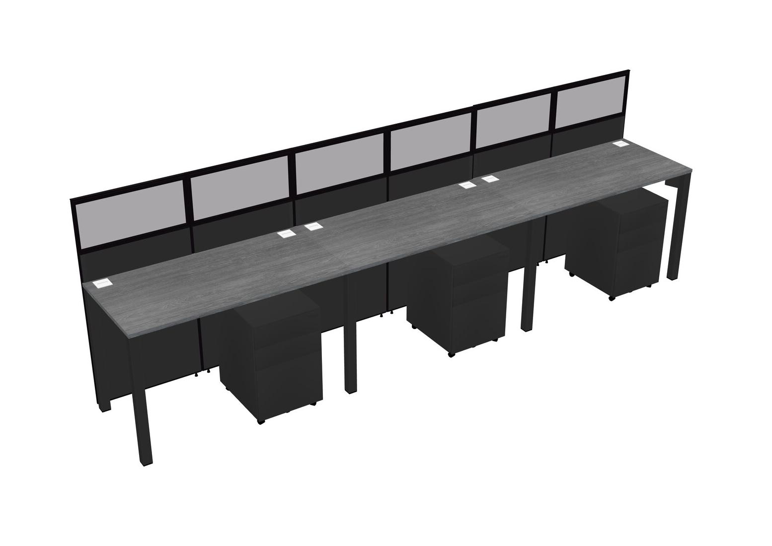 Grey Shared Rectangular Office Cubicle Panel System With Mobile Drawers For 3 Persons
