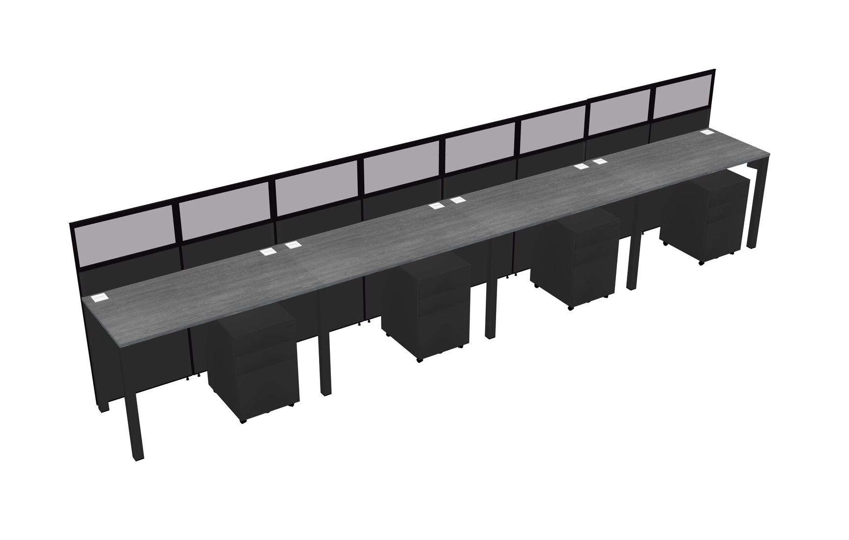 Grey Shared Rectangular Office Cubicle Panel System With Mobile Drawers For 4 Persons