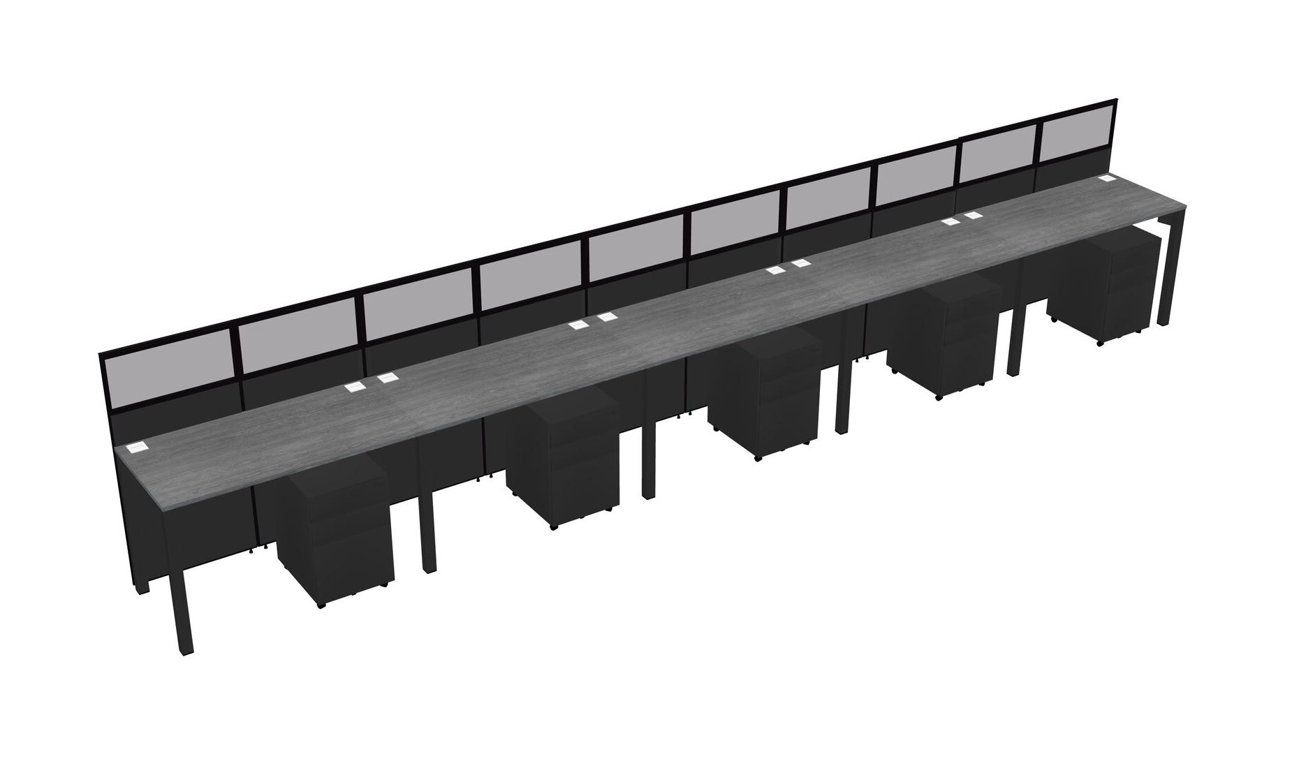 Grey Shared Rectangular Office Cubicle Panel System With Mobile Drawers For 5 Persons
