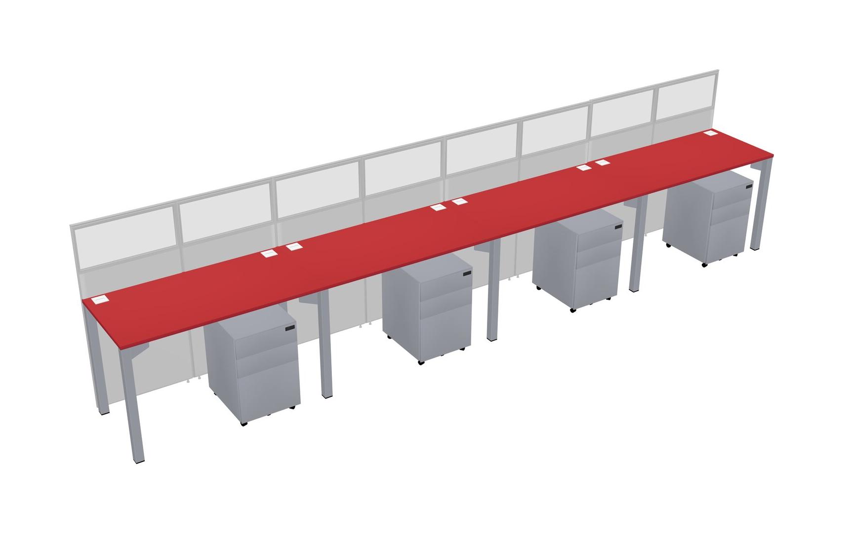 Prism Red Shared Rectangular Office Cubicle Panel System With Mobile Drawers For 4 Persons