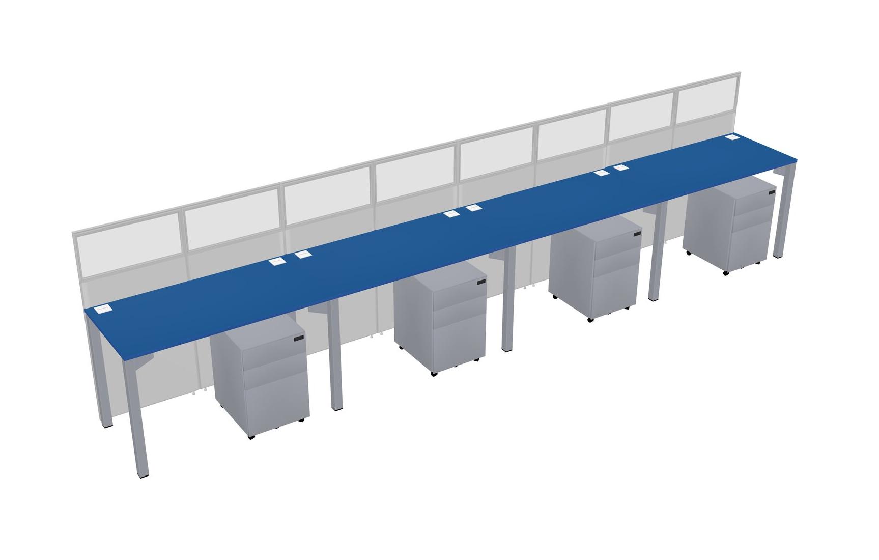 Prism Blue Shared Rectangular Office Cubicle Panel System With Mobile Drawers For 4 Persons