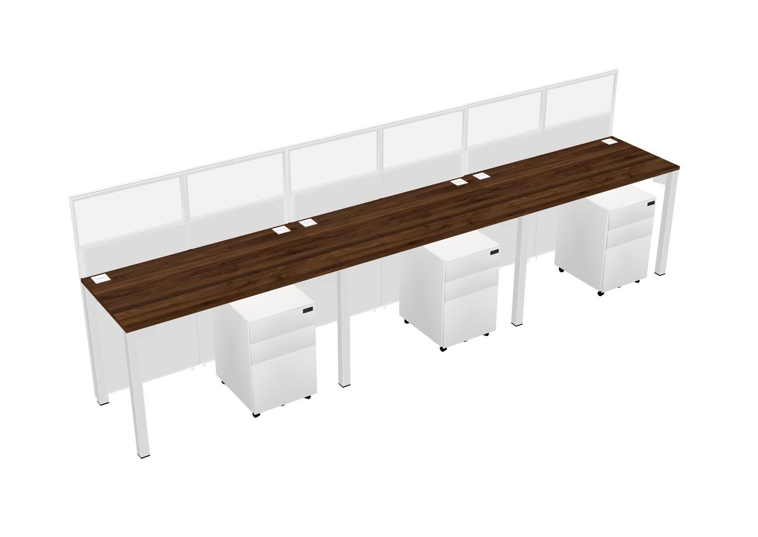 Columbia Walnut Shared Rectangular Office Cubicle Panel System With Mobile Drawers For 3 Persons