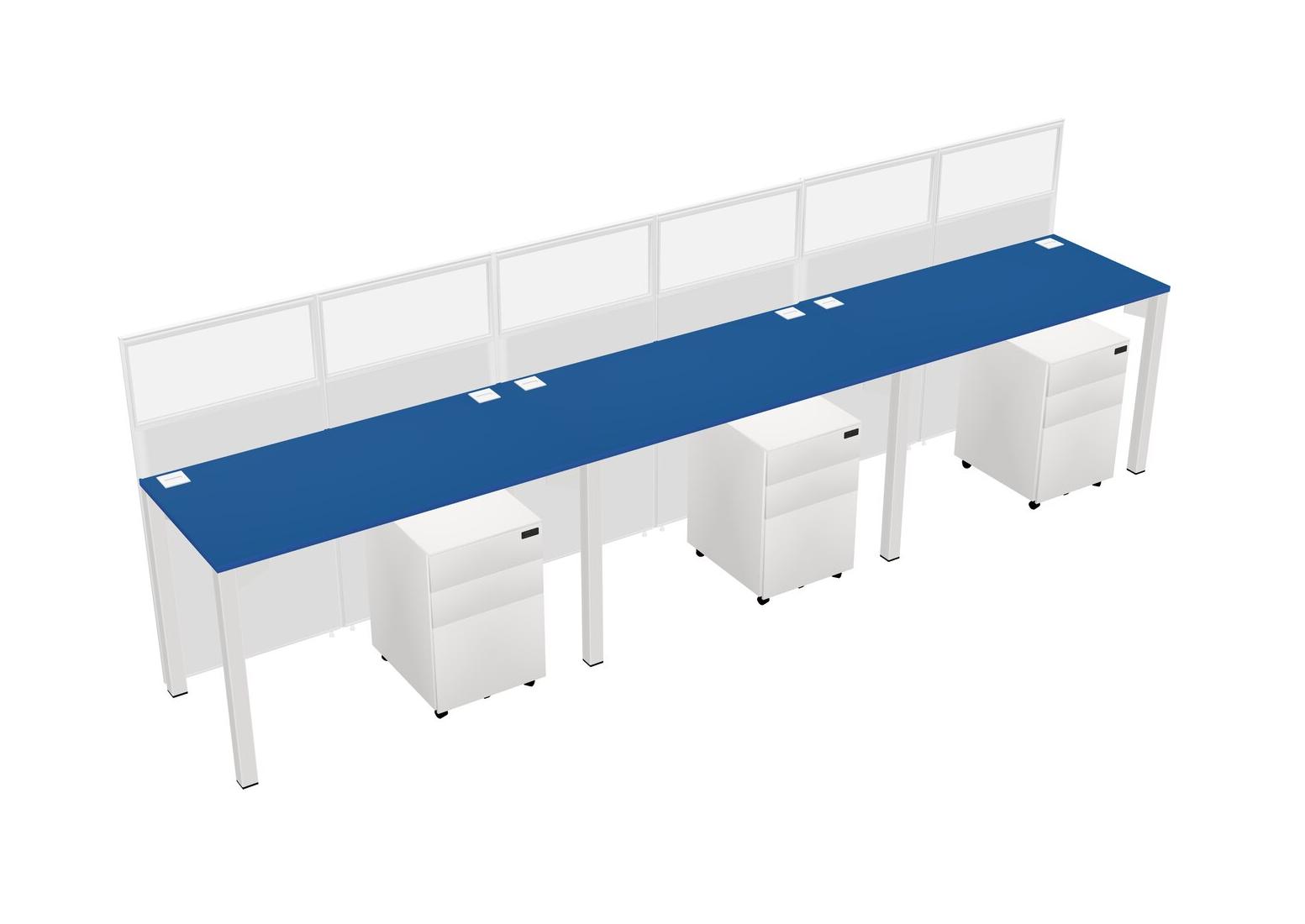 Prism Blue Shared Rectangular Office Cubicle Panel System With Mobile Drawers For 3 Persons