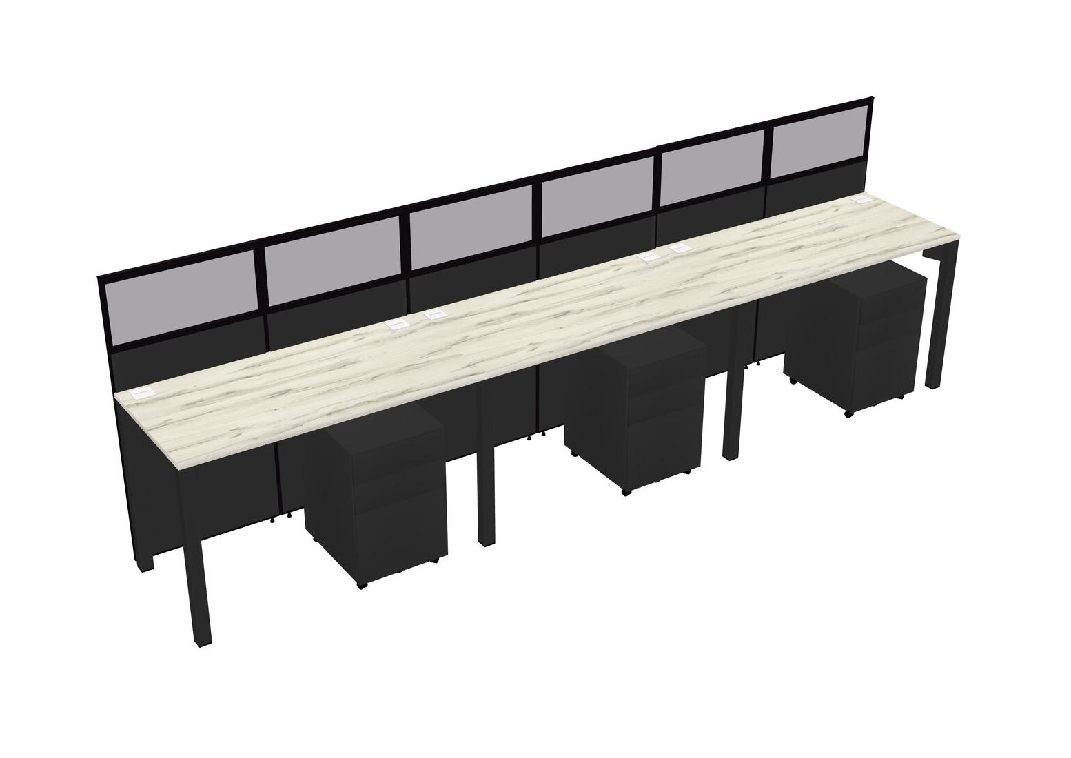 Heinne Holz Shared Rectangular Office Cubicle Panel System With Mobile Drawers For 3 Persons