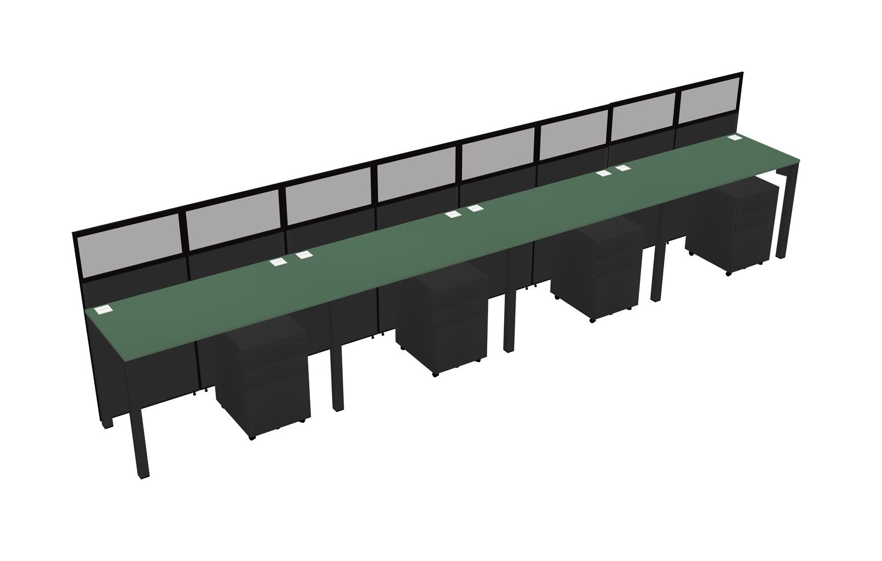 Green Shared Rectangular Office Cubicle Panel System With Mobile Drawers For 4 Persons