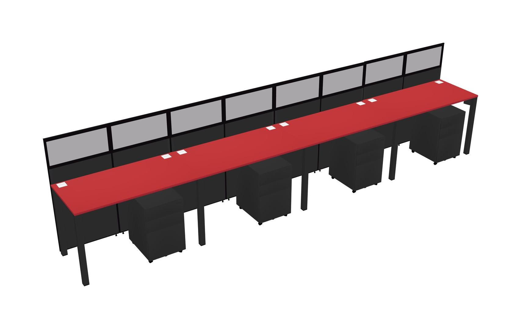 Prism Red Shared Rectangular Office Cubicle Panel System With Mobile Drawers For 4 Persons