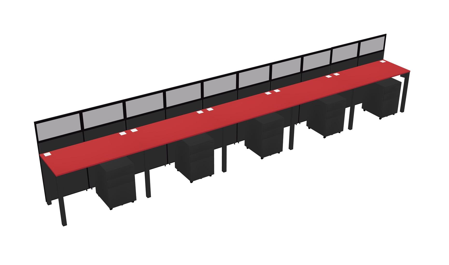 Prism Red Shared Rectangular Office Cubicle Panel System With Mobile Drawers For 5 Persons