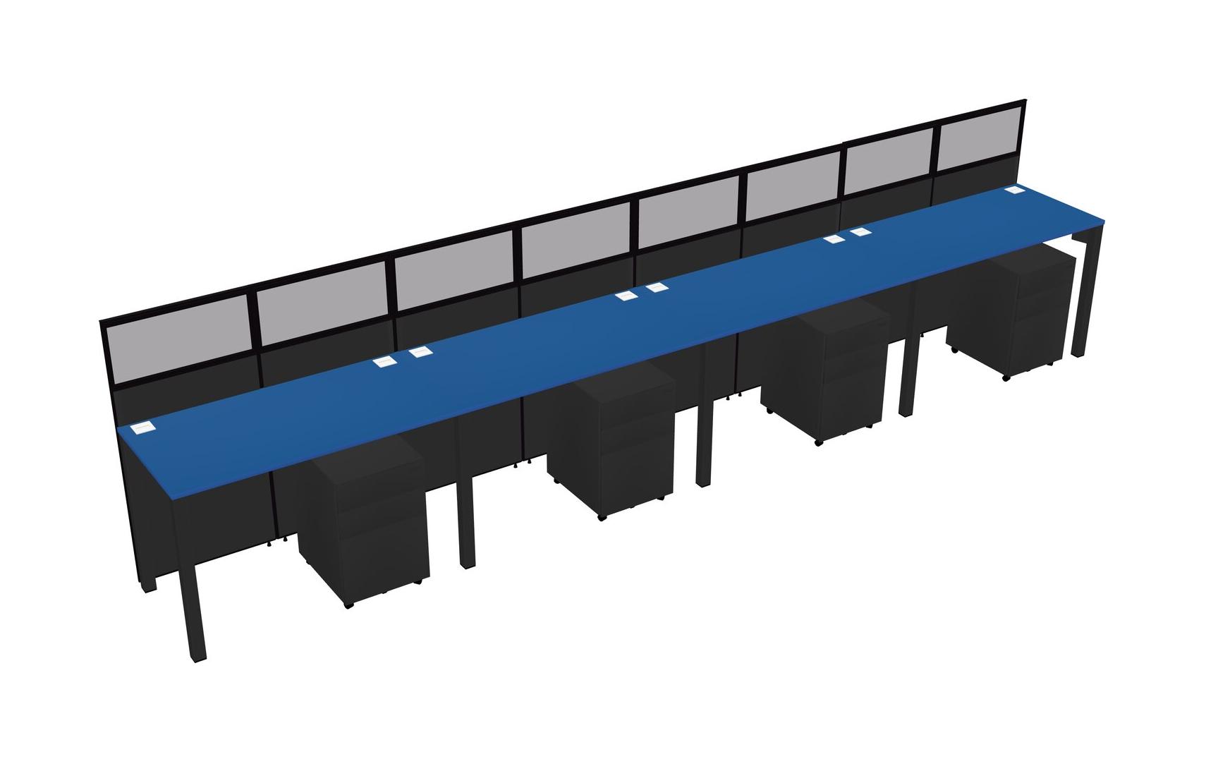 Prism Blue Shared Rectangular Office Cubicle Panel System With Mobile Drawers For 4 Persons
