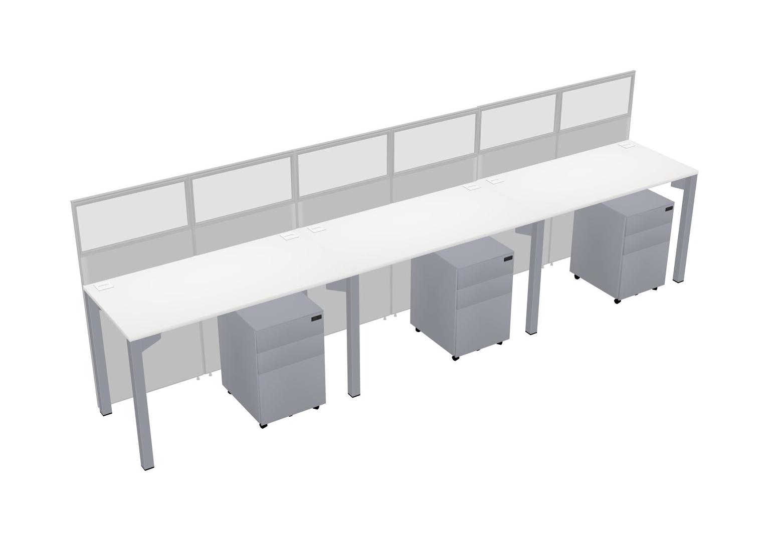 White Shared Rectangular Office Cubicle Panel System With Mobile Drawers For 3 Persons