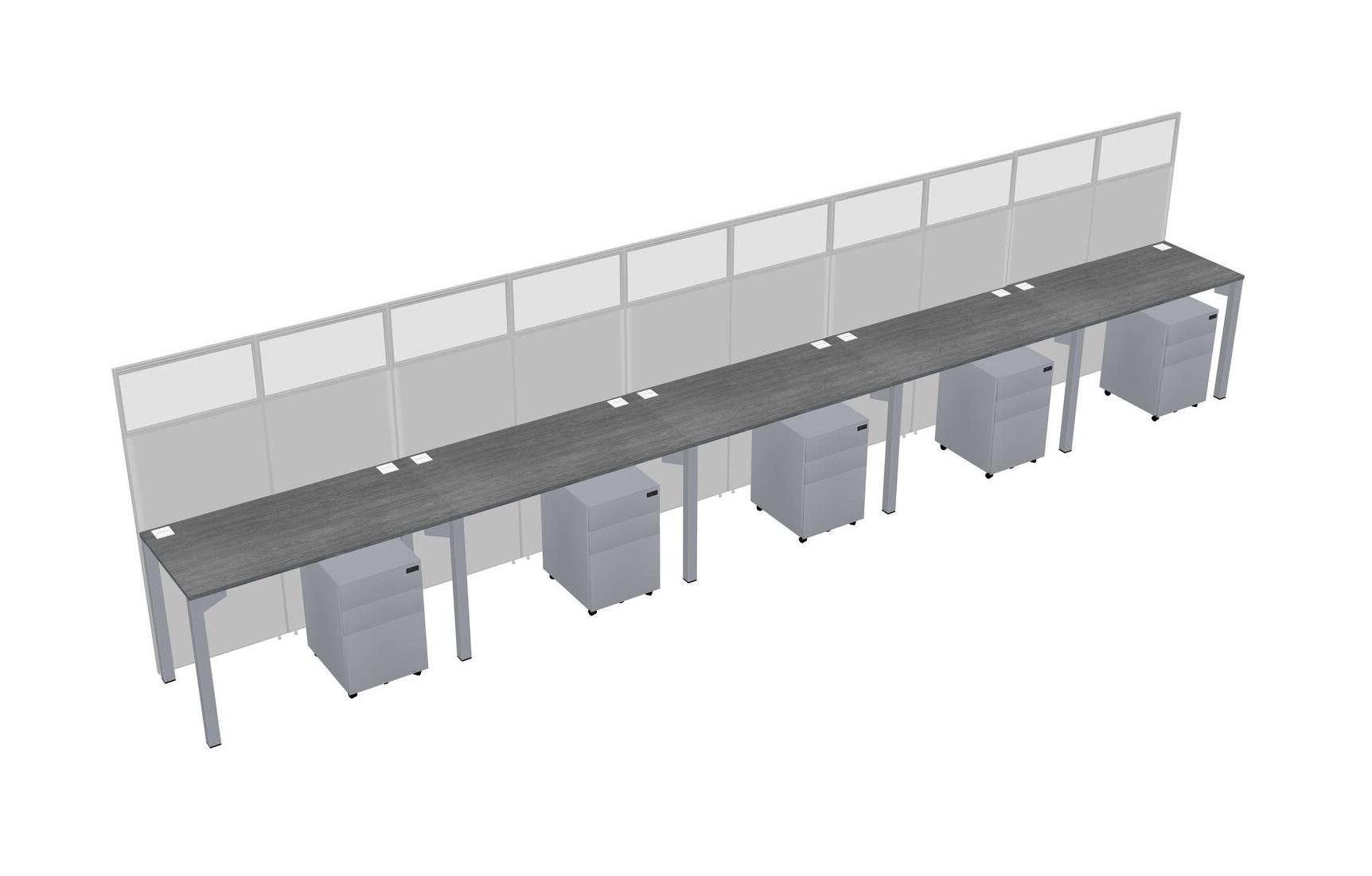 Grey Shared Rectangular Office Cubicle Panel System With Mobile Drawers For 5 Persons
