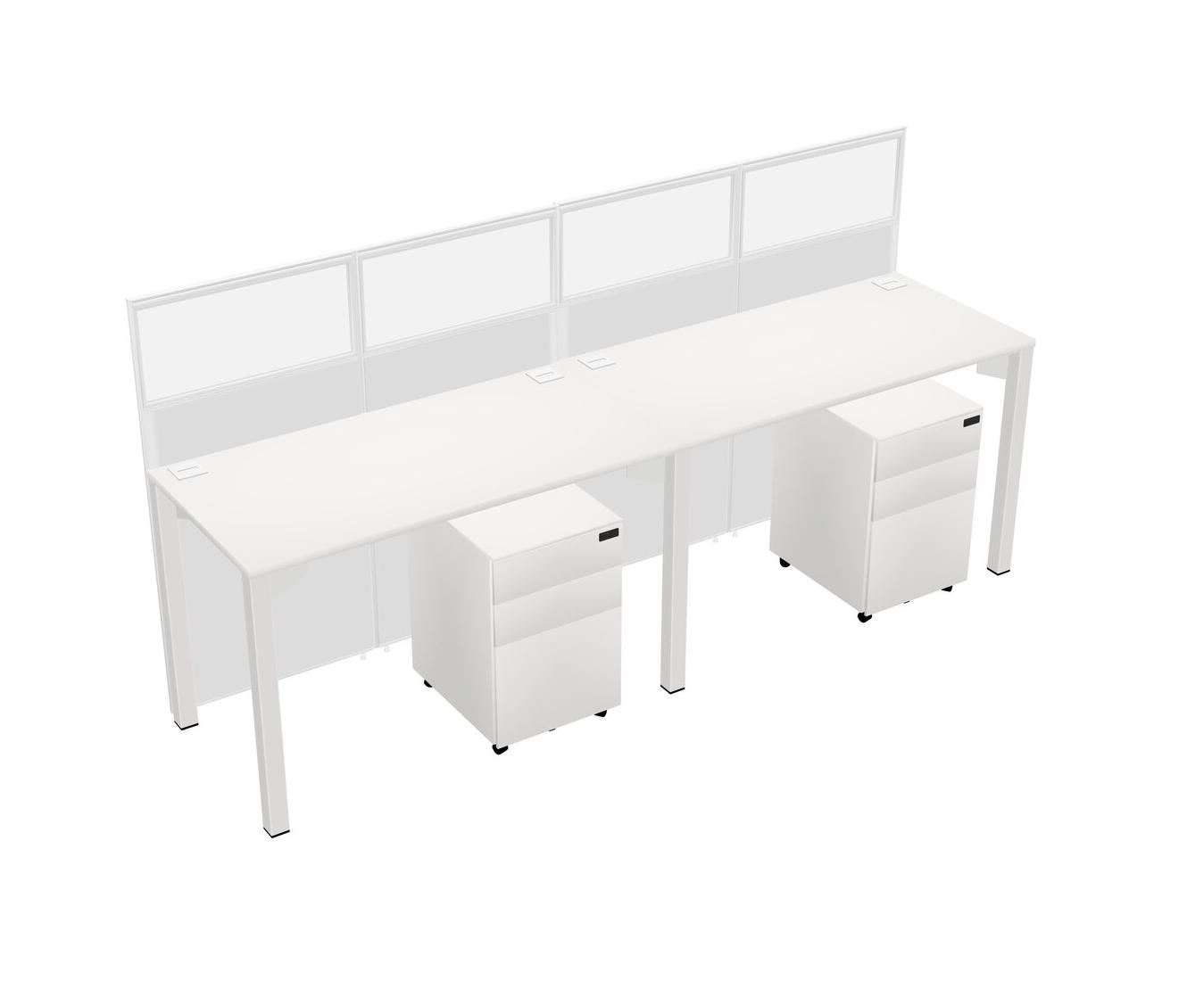 White Shared Rectangular Office Cubicle Panel System With Mobile Drawers For 2 Persons