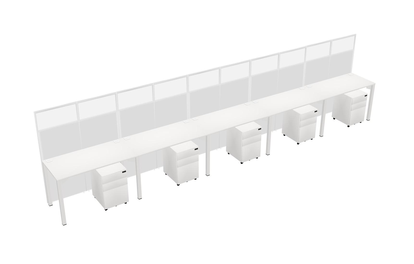 White Shared Rectangular Office Cubicle Panel System With Mobile Drawers For 5 Persons