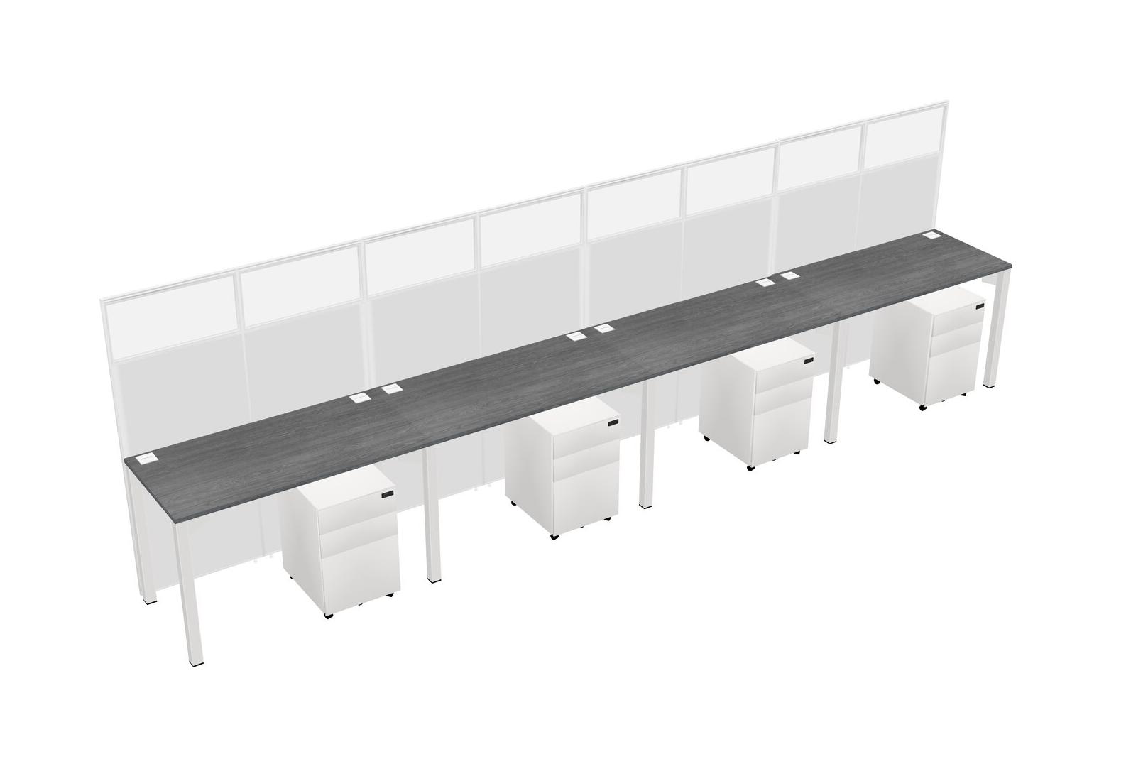 Grey Shared Rectangular Office Cubicle Panel System With Mobile Drawers For 4 Persons