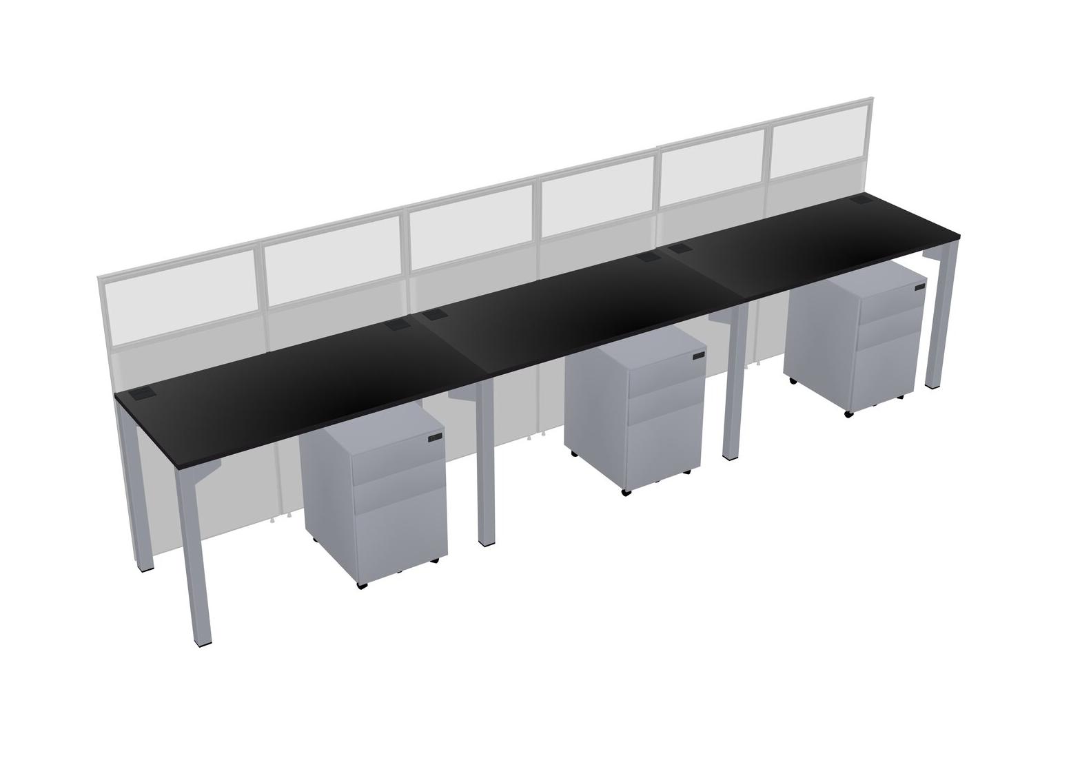 Black Shared Rectangular Office Cubicle Panel System With Mobile Drawers For 3 Persons