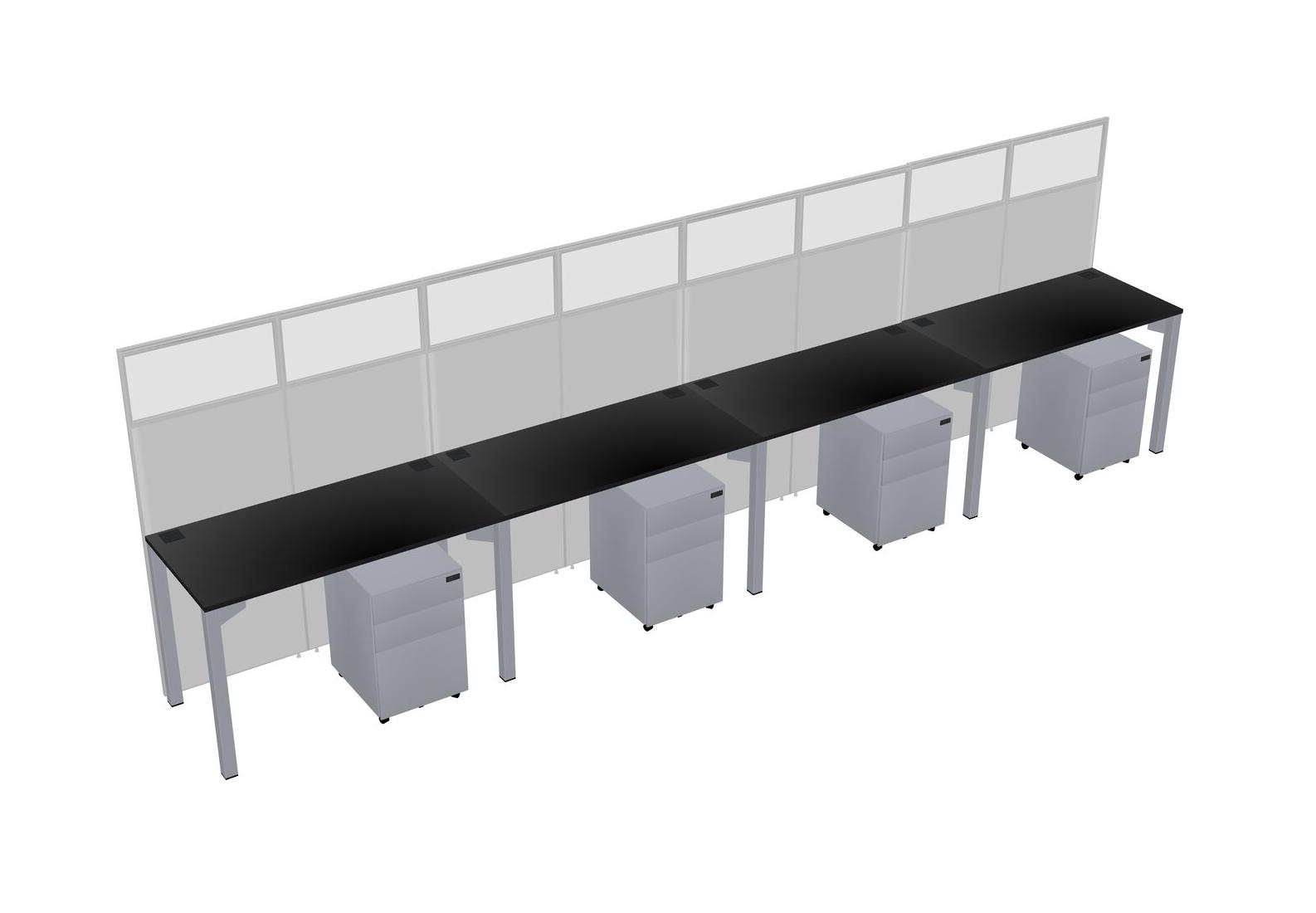 Black Shared Rectangular Office Cubicle Panel System With Mobile Drawers For 4 Persons