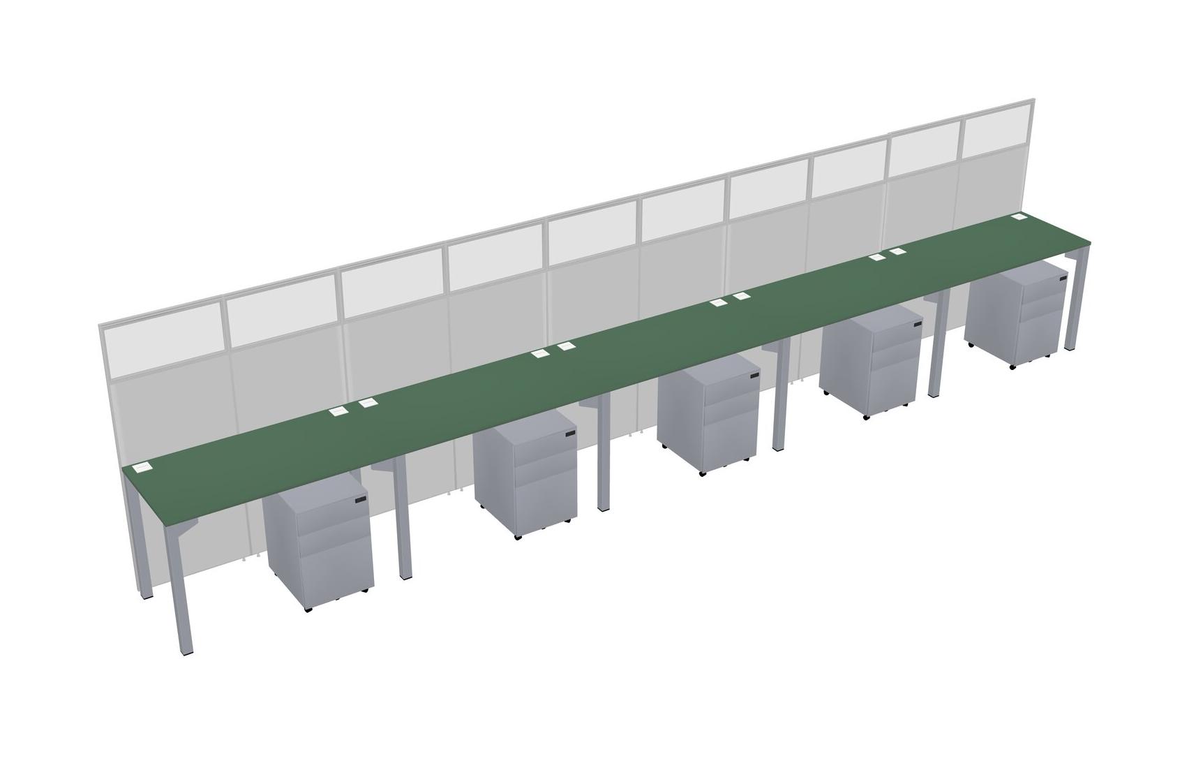 Green Shared Rectangular Office Cubicle Panel System With Mobile Drawers For 5 Persons