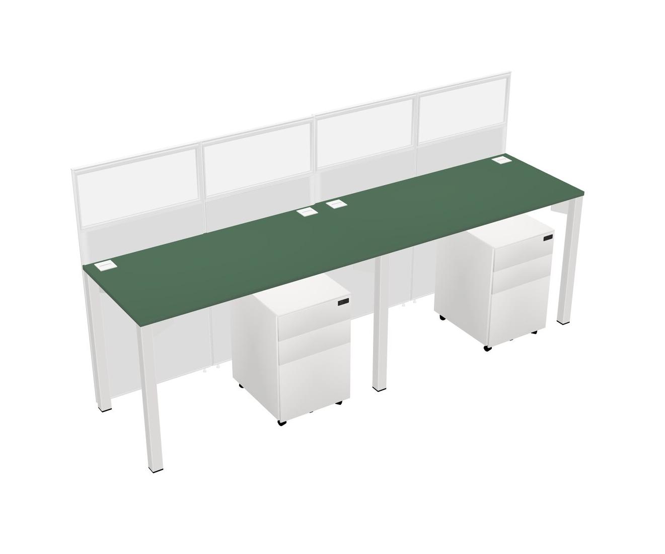 Green Shared Rectangular Office Cubicle Panel System With Mobile Drawers For 2 Persons