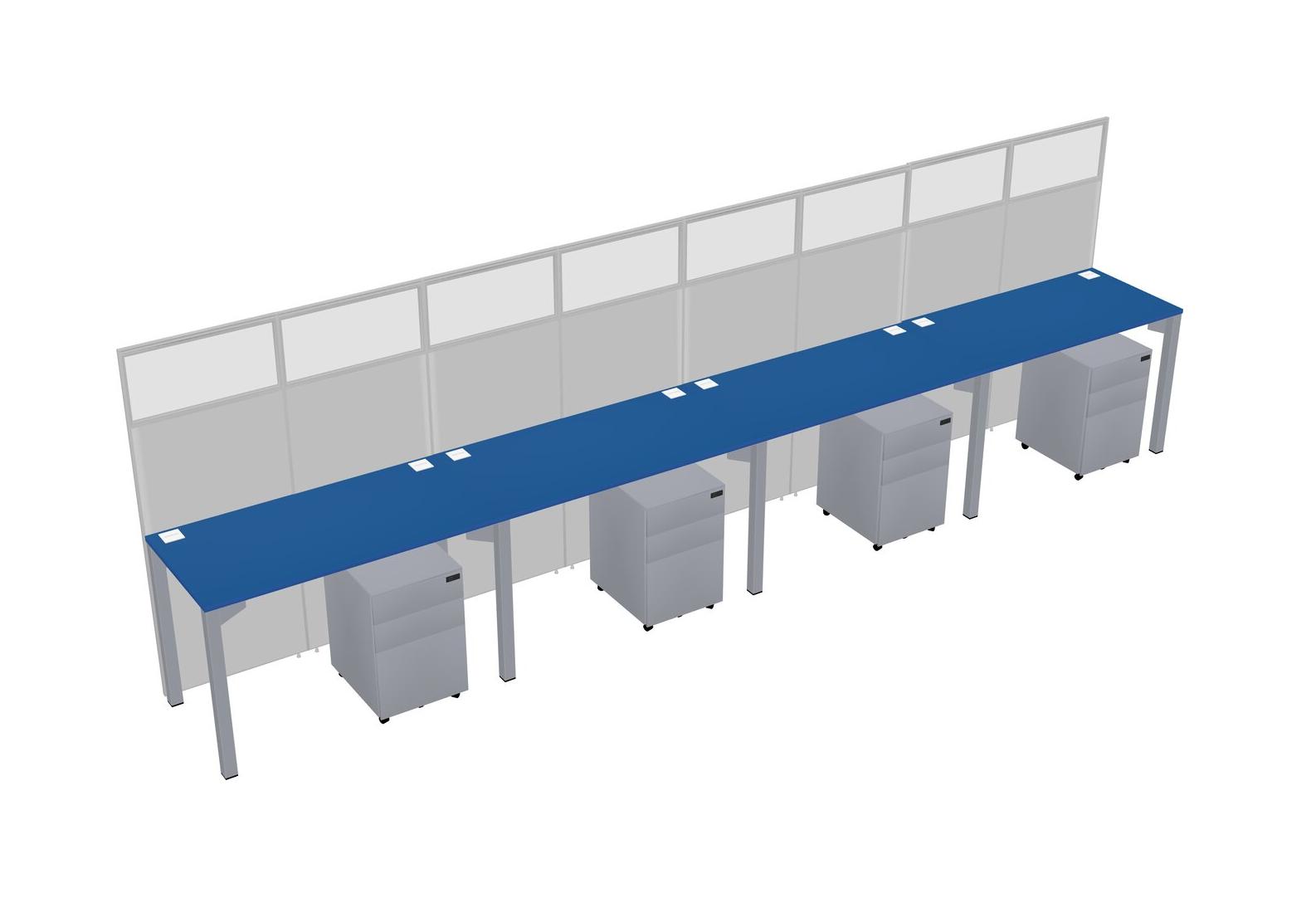 Prism Blue Shared Rectangular Office Cubicle Panel System With Mobile Drawers For 4 Persons