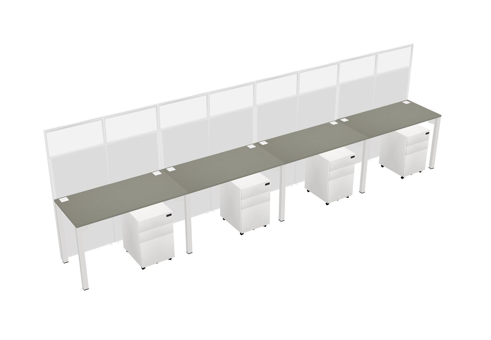 Grey Shadows Shared Rectangular Office Cubicle Panel System With Mobile Drawers For 4 Persons