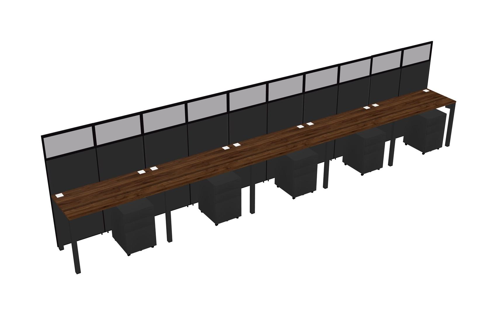 Columbia Walnut Shared Rectangular Office Cubicle Panel System With Mobile Drawers For 5 Persons