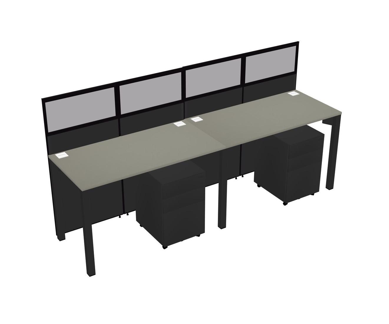 Grey Shadows Shared Rectangular Office Cubicle Panel System With Mobile Drawers For 2 Persons