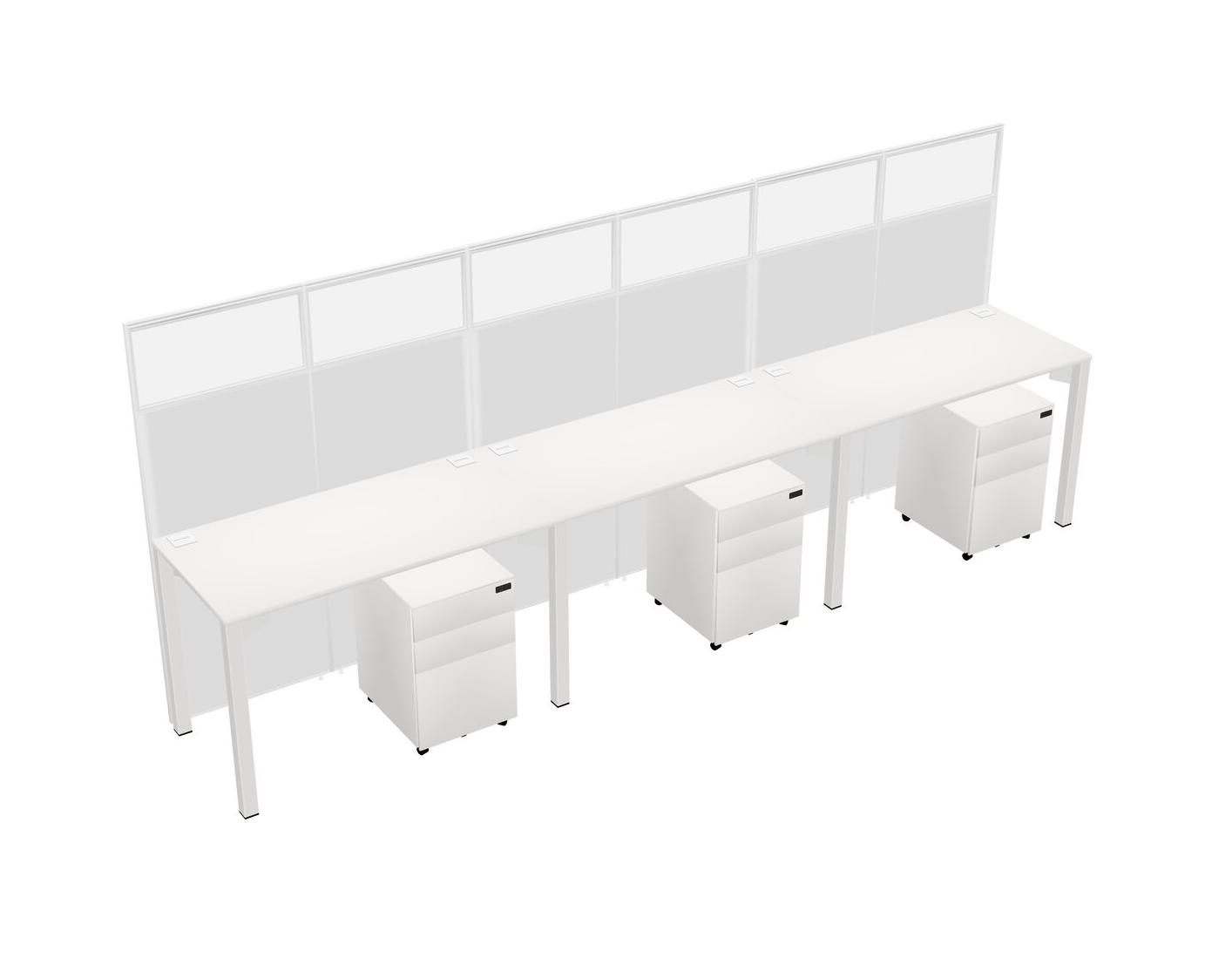 White Shared Rectangular Office Cubicle Panel System With Mobile Drawers For 3 Persons