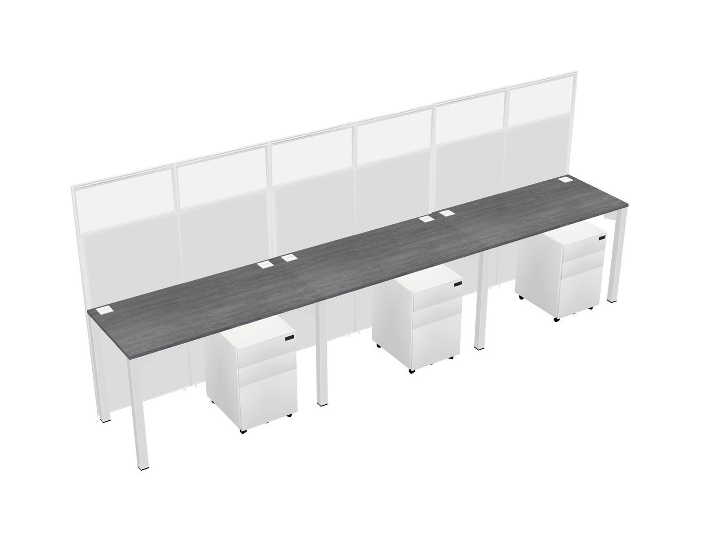 Grey Shared Rectangular Office Cubicle Panel System With Mobile Drawers For 3 Persons