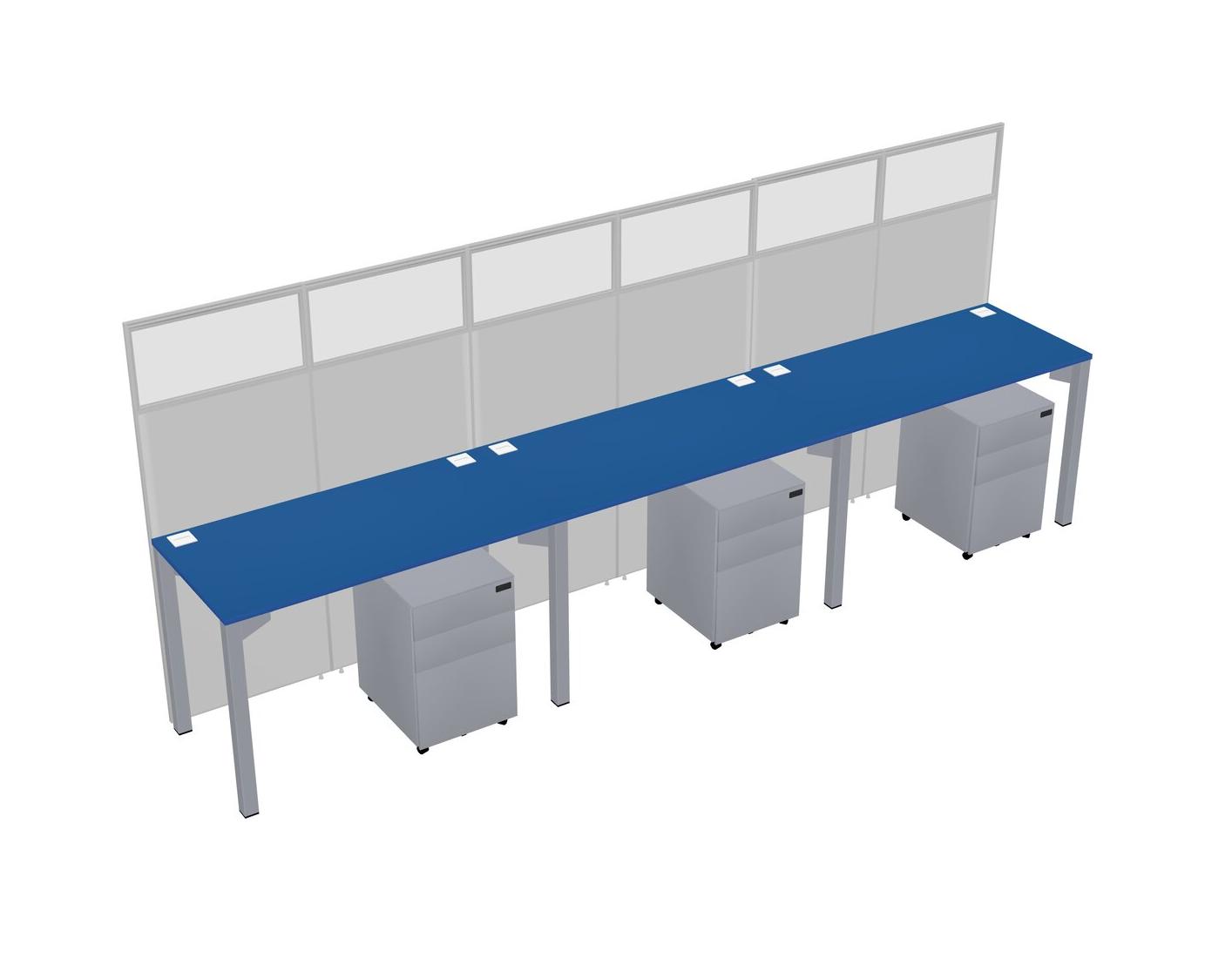 Prism Blue Shared Rectangular Office Cubicle Panel System With Mobile Drawers For 3 Persons