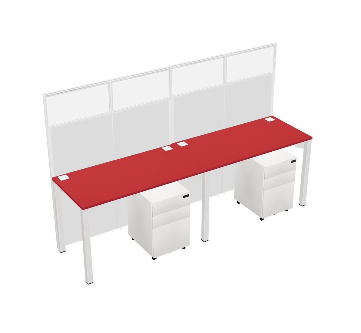 Prism Red Shared Rectangular Office Cubicle Panel System With Mobile Drawers For 2 Persons