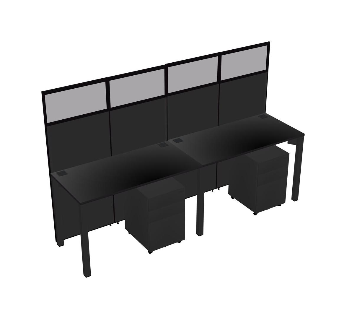 Black Shared Rectangular Office Cubicle Panel System With Mobile Drawers For 2 Persons