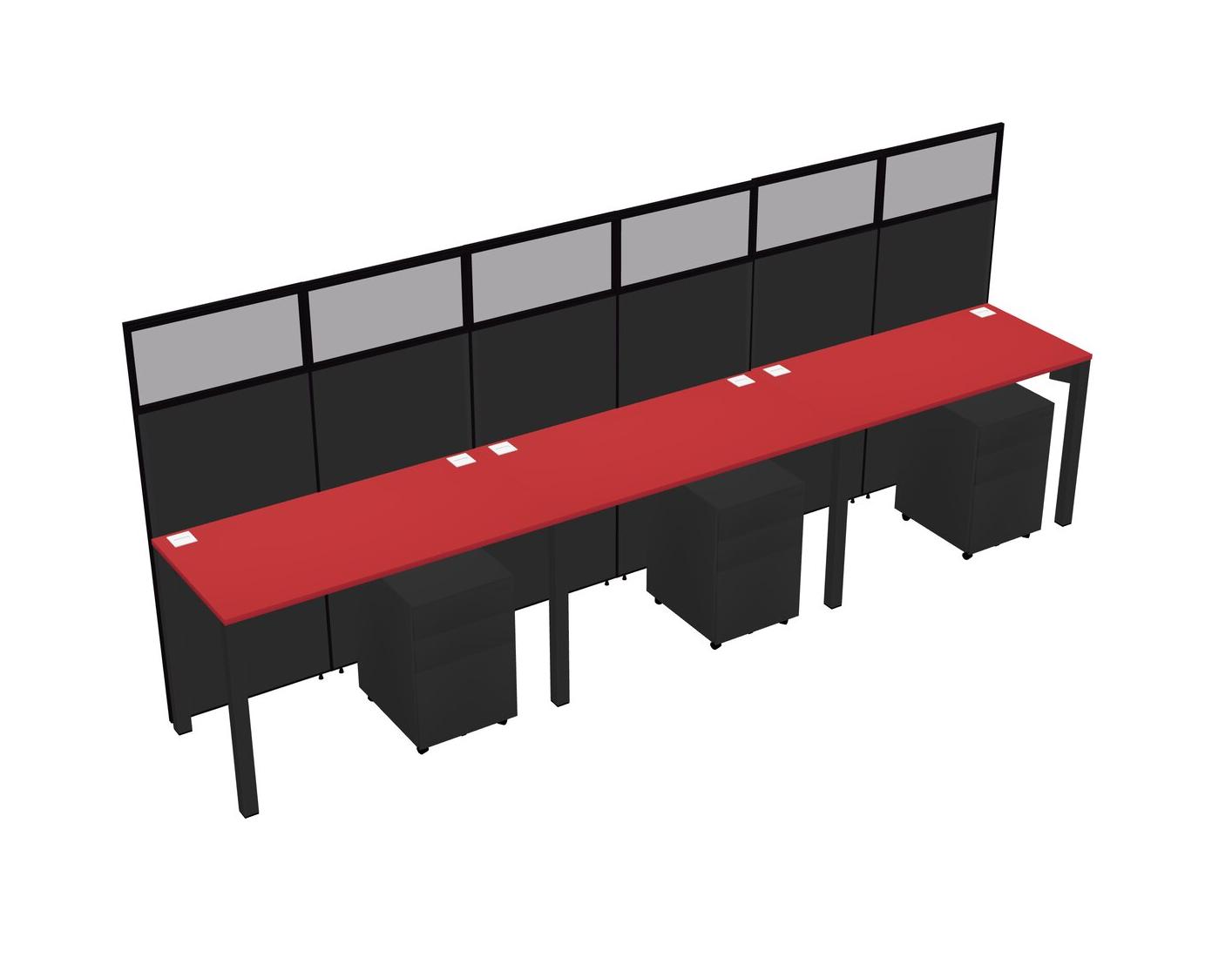 Prism Red Shared Rectangular Office Cubicle Panel System With Mobile Drawers For 3 Persons
