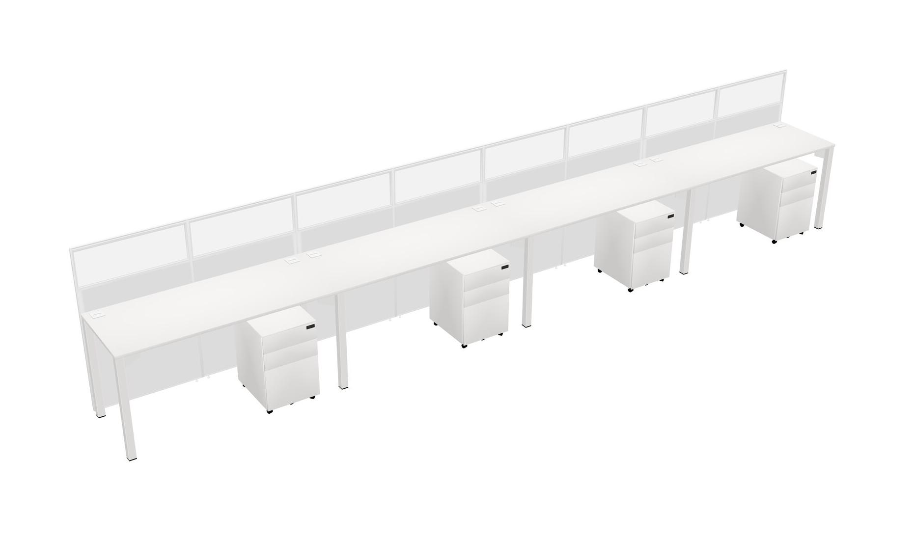 White Shared Rectangular Office Cubicle Panel System With Mobile Drawers For 4 Persons