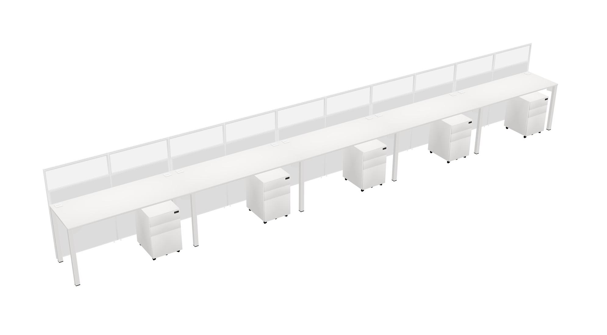 White Shared Rectangular Office Cubicle Panel System With Mobile Drawers For 5 Persons