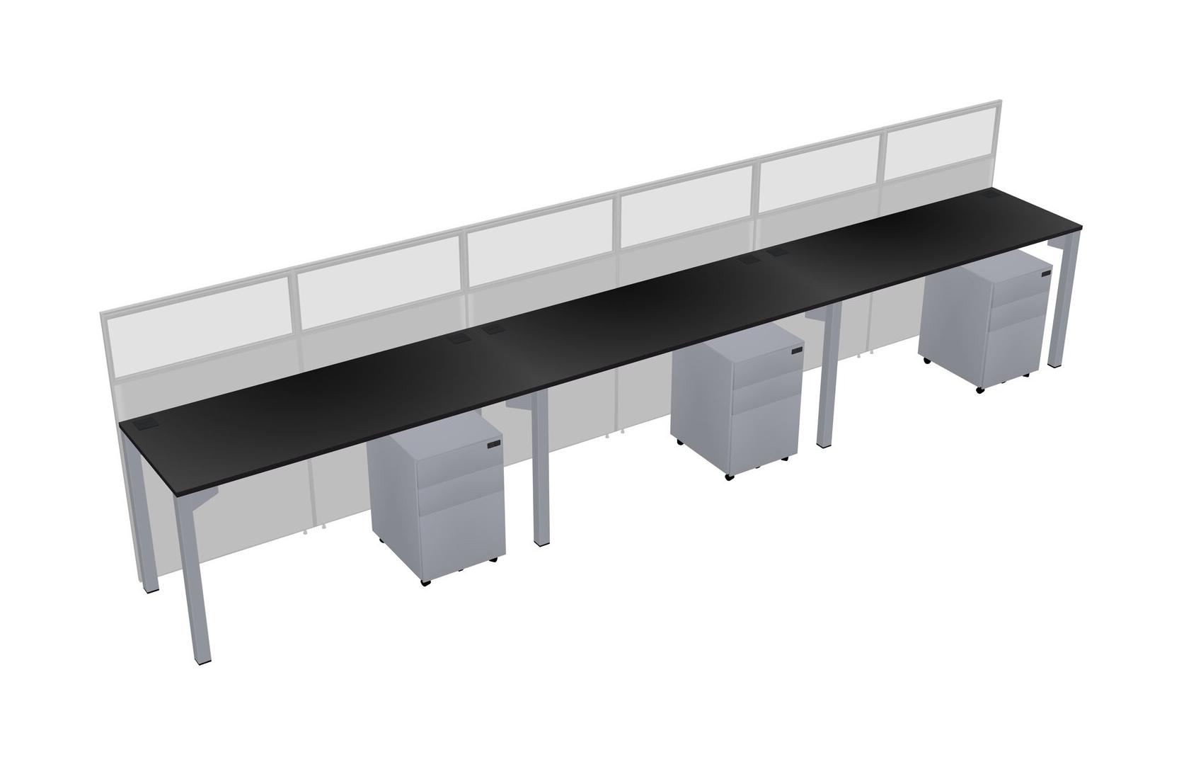 Black Shared Rectangular Office Cubicle Panel System With Mobile Drawers For 3 Persons