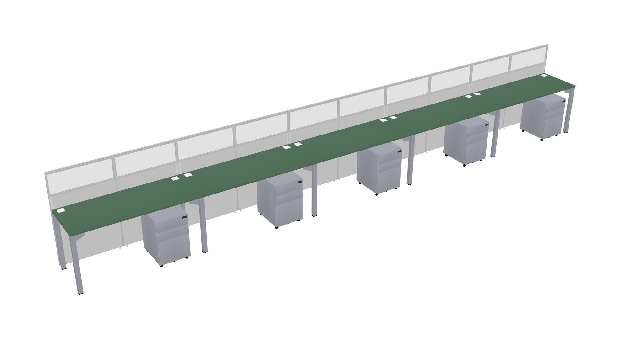 Green Shared Rectangular Office Cubicle Panel System With Mobile Drawers For 5 Persons