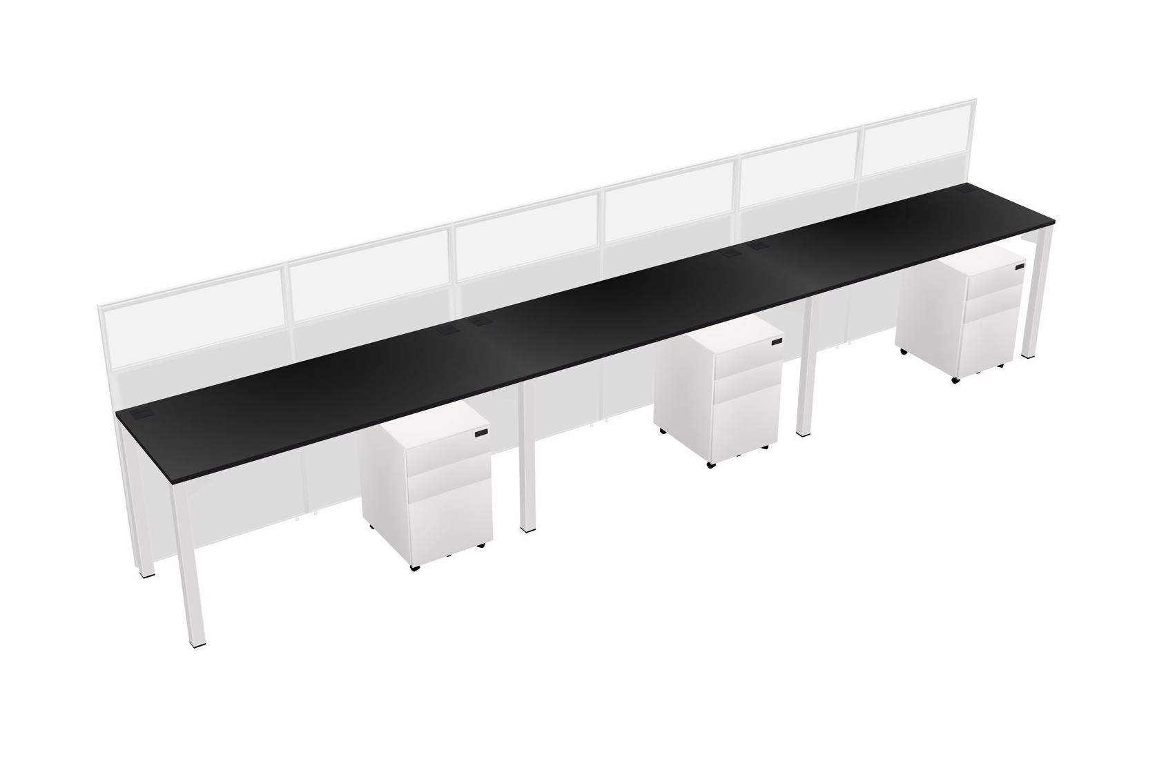 Black Shared Rectangular Office Cubicle Panel System With Mobile Drawers For 3 Persons