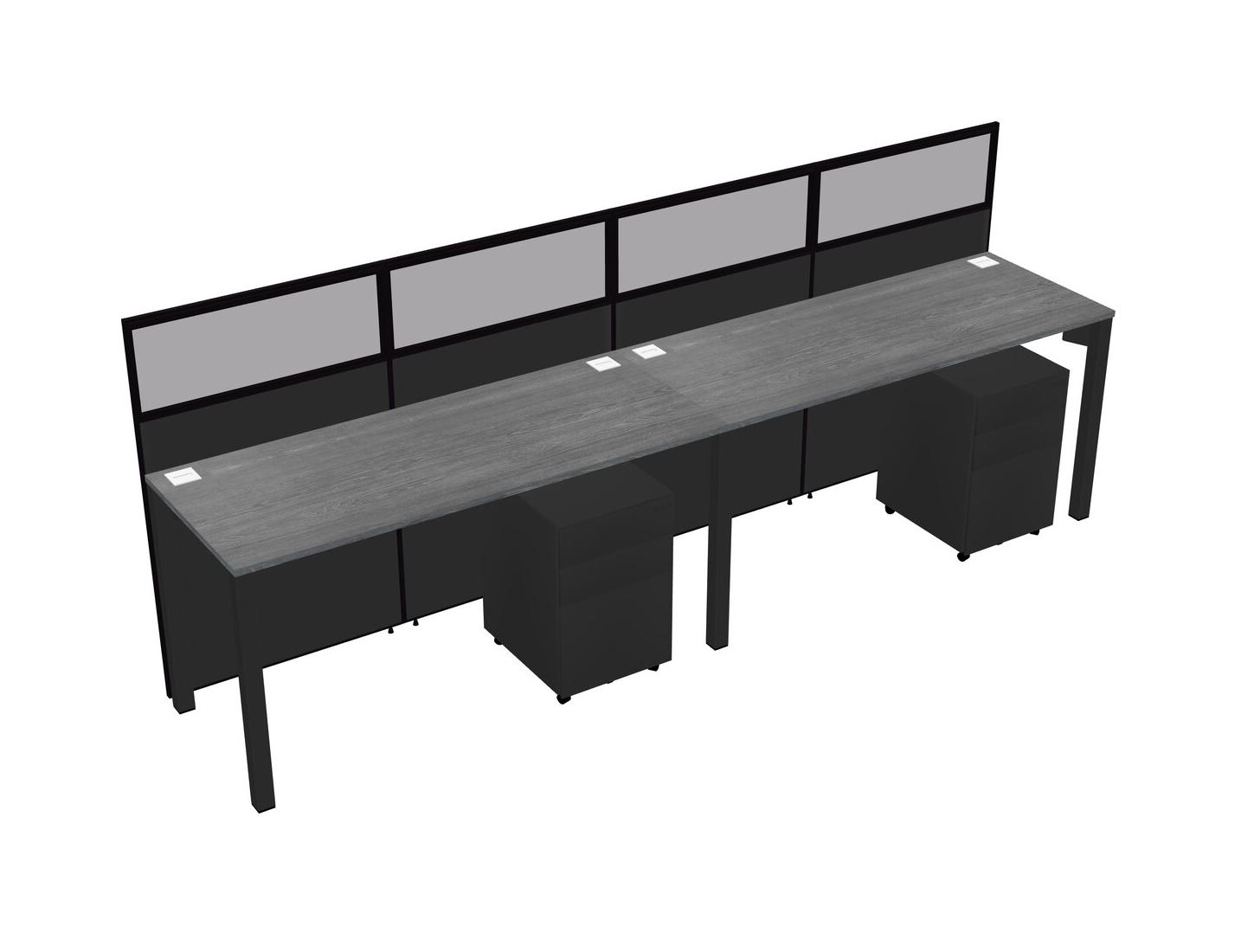 Grey Shared Rectangular Office Cubicle Panel System With Mobile Drawers For 2 Persons