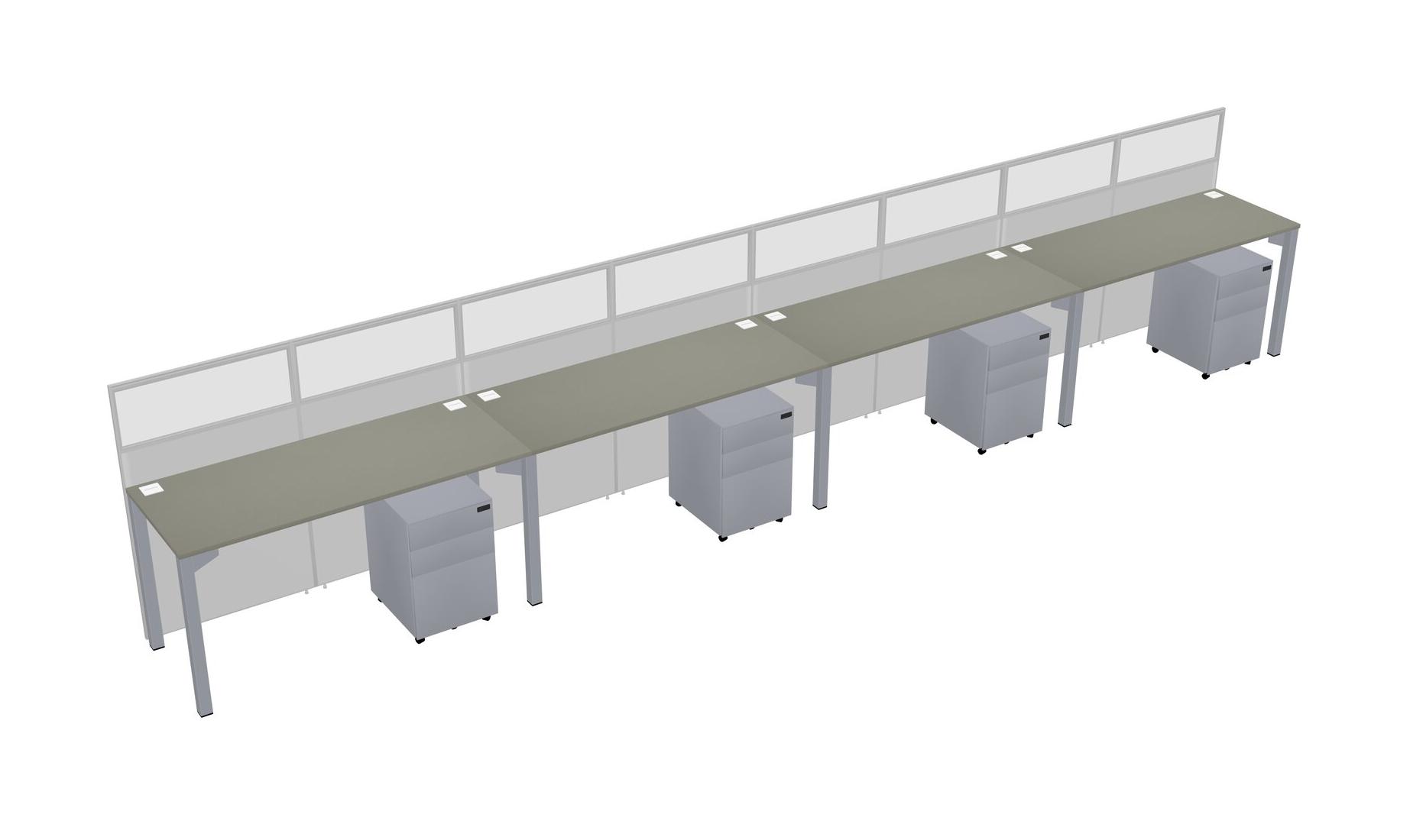 Grey Shadows Shared Rectangular Office Cubicle Panel System With Mobile Drawers For 4 Persons