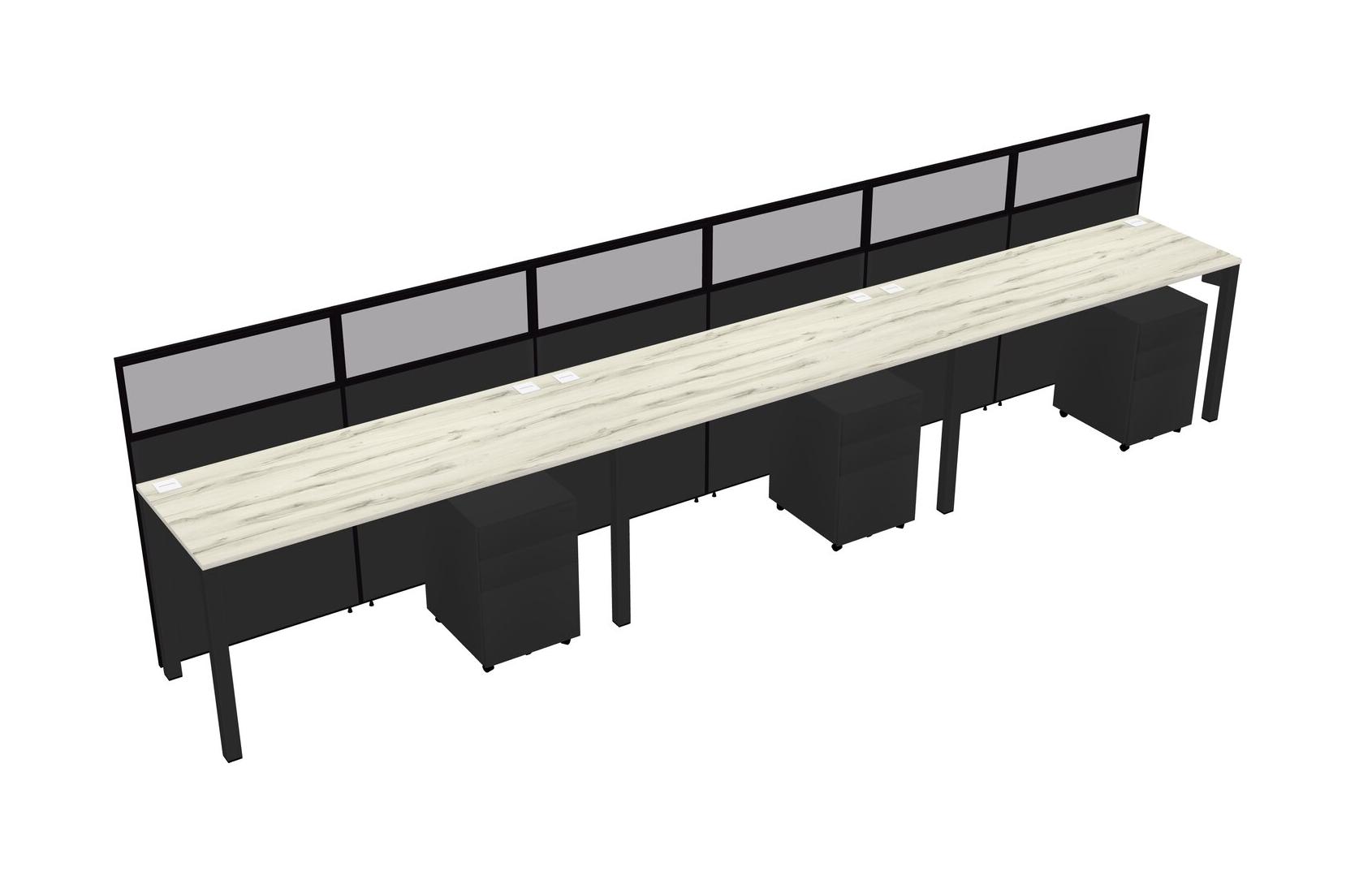 Heinne Holz Shared Rectangular Office Cubicle Panel System With Mobile Drawers For 3 Persons