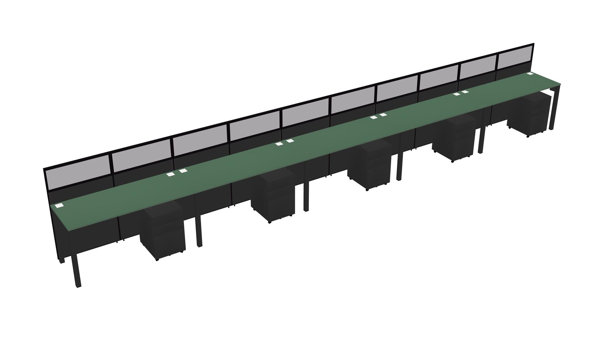 Green Shared Rectangular Office Cubicle Panel System With Mobile Drawers For 5 Persons