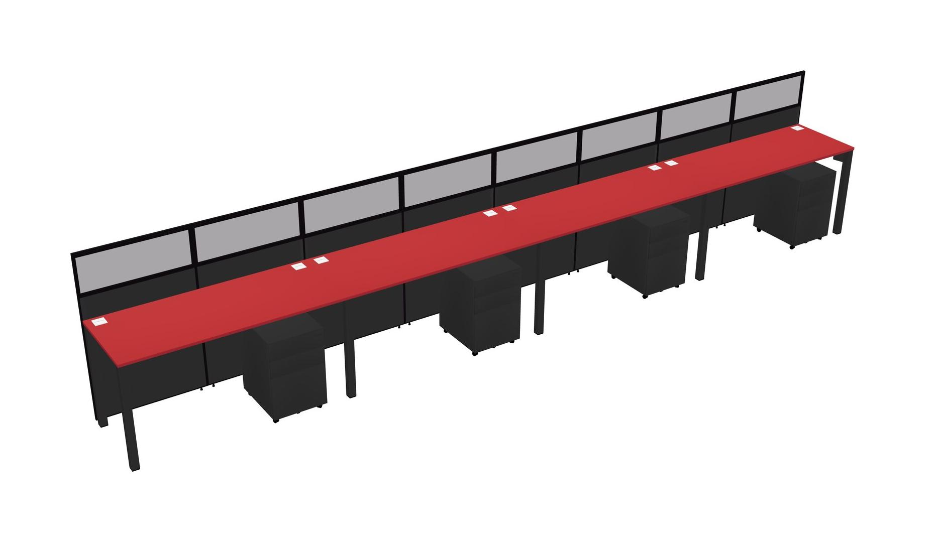 Prism Red Shared Rectangular Office Cubicle Panel System With Mobile Drawers For 4 Persons