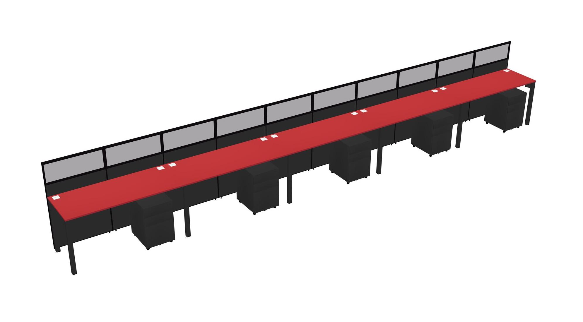 Prism Red Shared Rectangular Office Cubicle Panel System With Mobile Drawers For 5 Persons