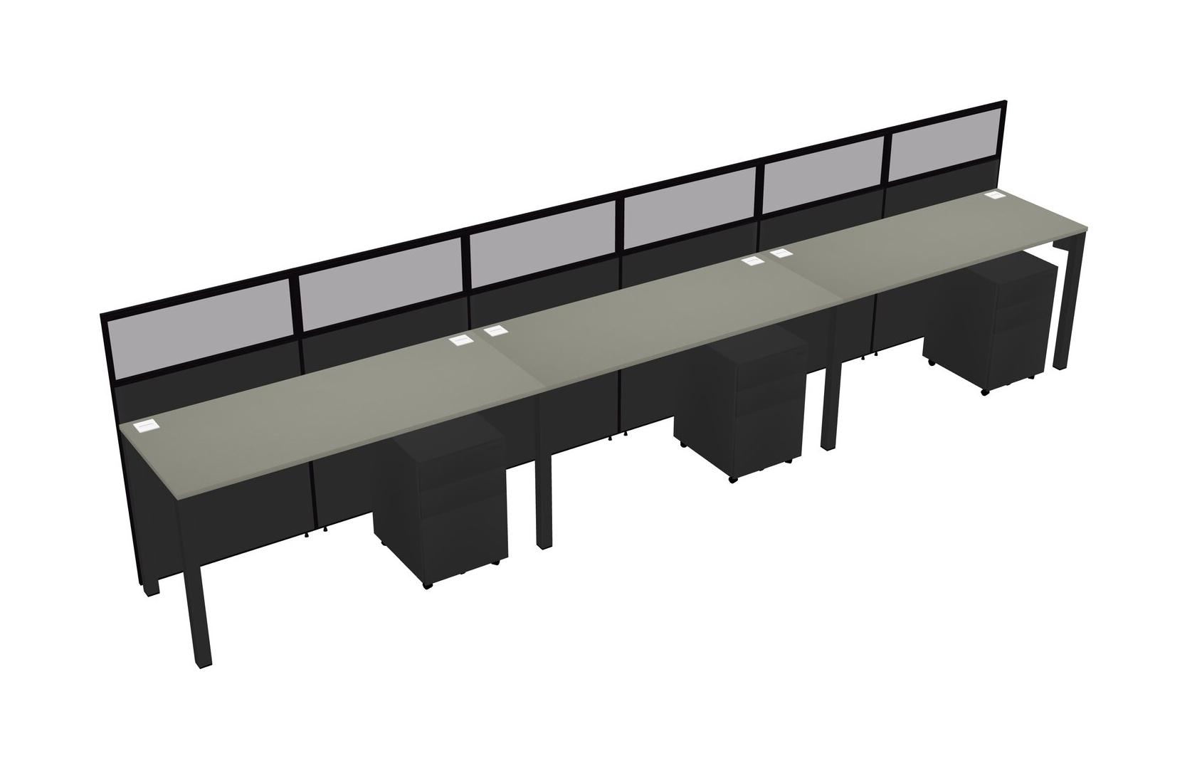 Grey Shadows Shared Rectangular Office Cubicle Panel System With Mobile Drawers For 3 Persons
